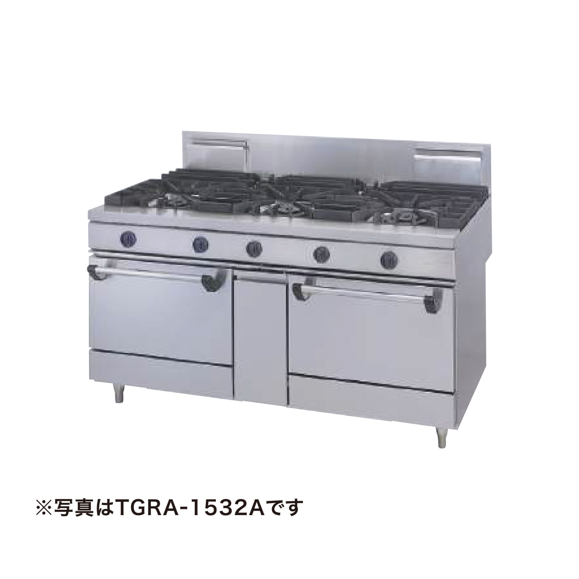 ※画像はイメージです タニコー タニコー/TGRA-1530/ガスレンジ【ウルティモシリーズ】 ¥666,000 ¥433,000(税別) ( 税込¥476,300 ) 数量 〈製品詳細〉 ・ガスレンジ【ウルティモシリーズ】 ・メーカー:タニコー ・型式:TGRA-1530 ・外寸寸法:1500×600×850 ・ガス消費量:都市ガス58.2kW/LPガス53.5kW ・ガス接続口径A(都市/LP):25 ・トップバーナー:φ165×3 ・使用最大鍋寸法(径):φ165=400 ・オーブン数:2 〈仕様・備考〉 ■受注生産品