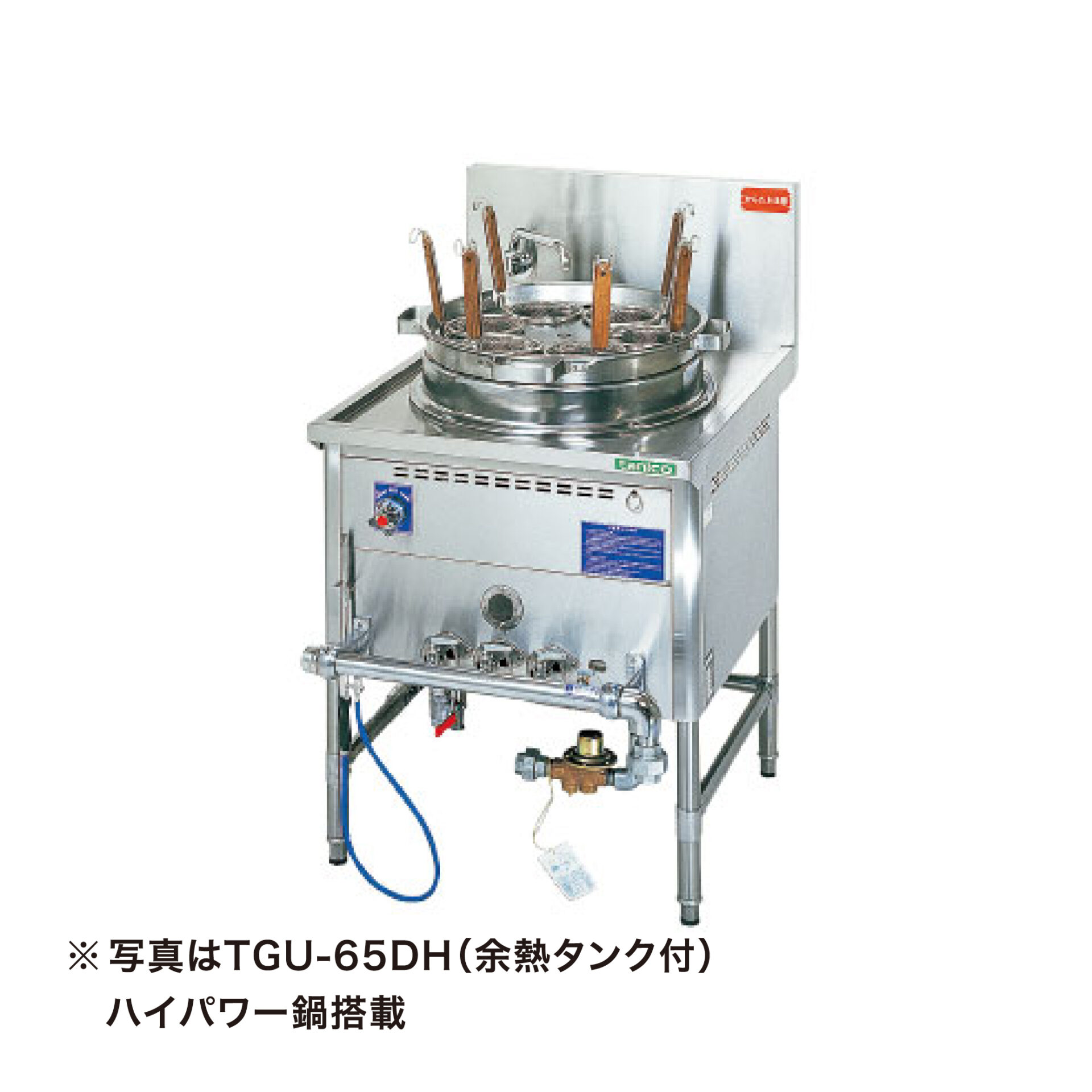※画像はイメージです その他 タニコー/TGU-65DH/ガスゆで麵器【ガス式】/奥行750mm ¥437,000 ¥291,000(税別) ( 税込¥320,100 ) 数量 〈製品詳細〉 ・ガスゆで麵器【ガス式】 ・メーカー:タニコー ・型式:TGU-65DH ・外寸寸法:650×750×800 ・ガス消費量:都市ガス23.3kW/LPガス23.2kW ・ガス接続口径A(都市/LP):25 ・給水口径A:20 ・排水口径A:20/40 ・鍋容量(ℓ):16 〈仕様・備考〉 ■高さ800mm ■6テボ