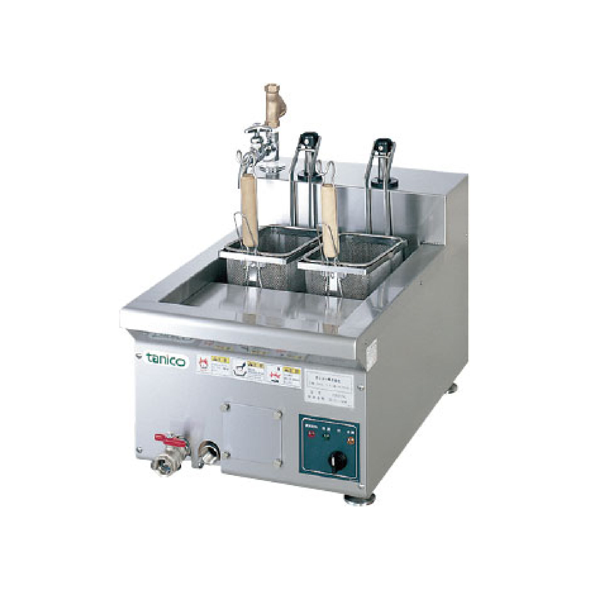 ※画像はイメージです スパゲッティ タニコー/TCEU-2AL/卓上型電気スパゲッティーボイラー【電気式】 ¥554,000 ¥392,000(税別) ( 税込¥431,200 ) 数量 〈製品詳細〉 ・卓上型電気スパゲッティーボイラー【電気式】 ・メーカー:タニコー ・型式:TCEU-2AL ・外寸寸法:400×650×290 ・電源:3φ200V ・消費量(50/60Hz):4.9kW ・給水口径A:15 ・排水口径A:20 ・槽水量(ℓ):11 〈仕様・備考〉 ■一槽式・2ゆでカゴ